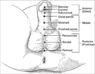 Instead of picturing the same range of in-between forms shown in the Prader and Quigley scales, medical illustrations of hypospadias variations show something odd: a carefully illustrated "normal penis" with a series of dots superimposed upon it to indicate the level at which the urinal meatus/ vaginal opening are located.