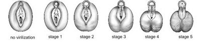 When a child is diagnosed as having some form of XX, CAH, congenital adrenal hyperplasia, the sex spectrum is described by the "Prader scale," and the "stages" of the "condition" evaluated using this chart: